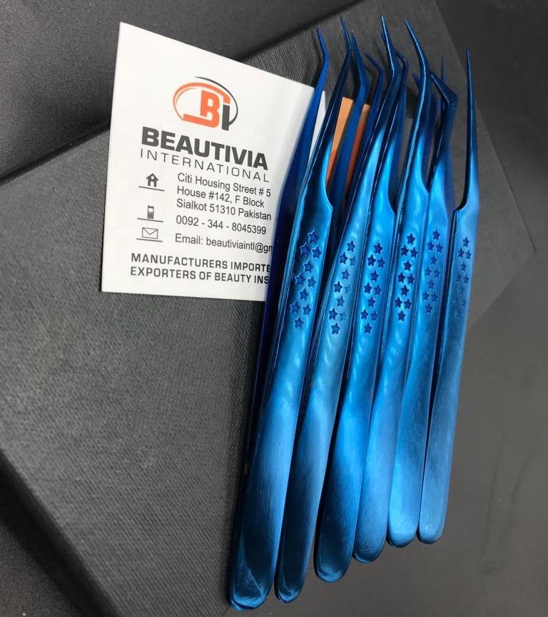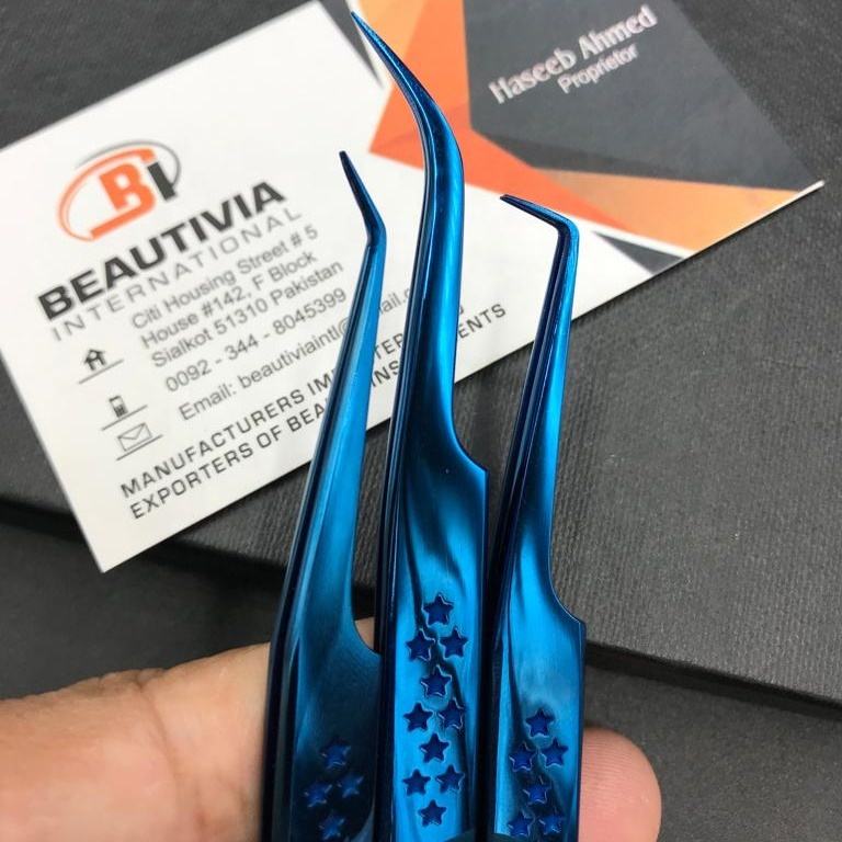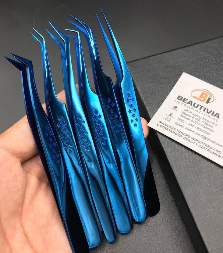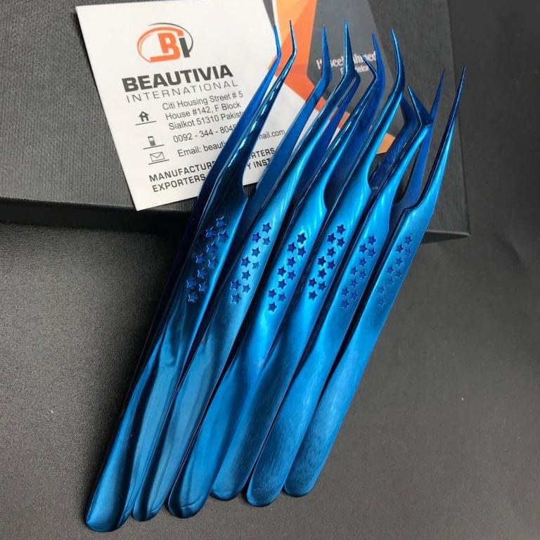 Customizable Star Print Blue Plasma Eyelash Extension Tweezers Sustainable Stainless Steel Professional Lash Tool