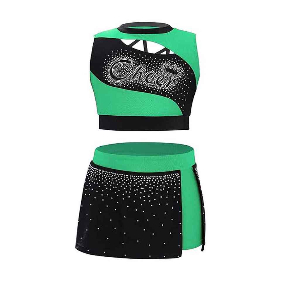 ชุดยูนิฟอร์มเชียร์ลีดเดอร์แบบสั่งทำได้ พร้อมลายพิมพ์แบบซับลิเมชั่น ตกแต่งด้วยคริสตัลวิบวับอย่างหรูหรา