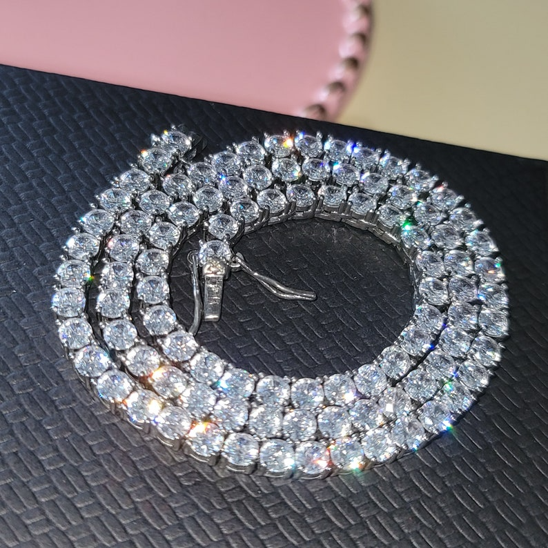 จี้สร้อยคอเทนนิสแบบปรับแต่งได้ พร้อมเพชรโมอิสซาไนต์ ตัวอักษรแบบวาร์ซิตี้ ชื่อและหมายเลขส่วนตัว เครื่องประดับแบบไอซ์ดี้สำหรับงานแต่งงานและงานปาร์ตี้