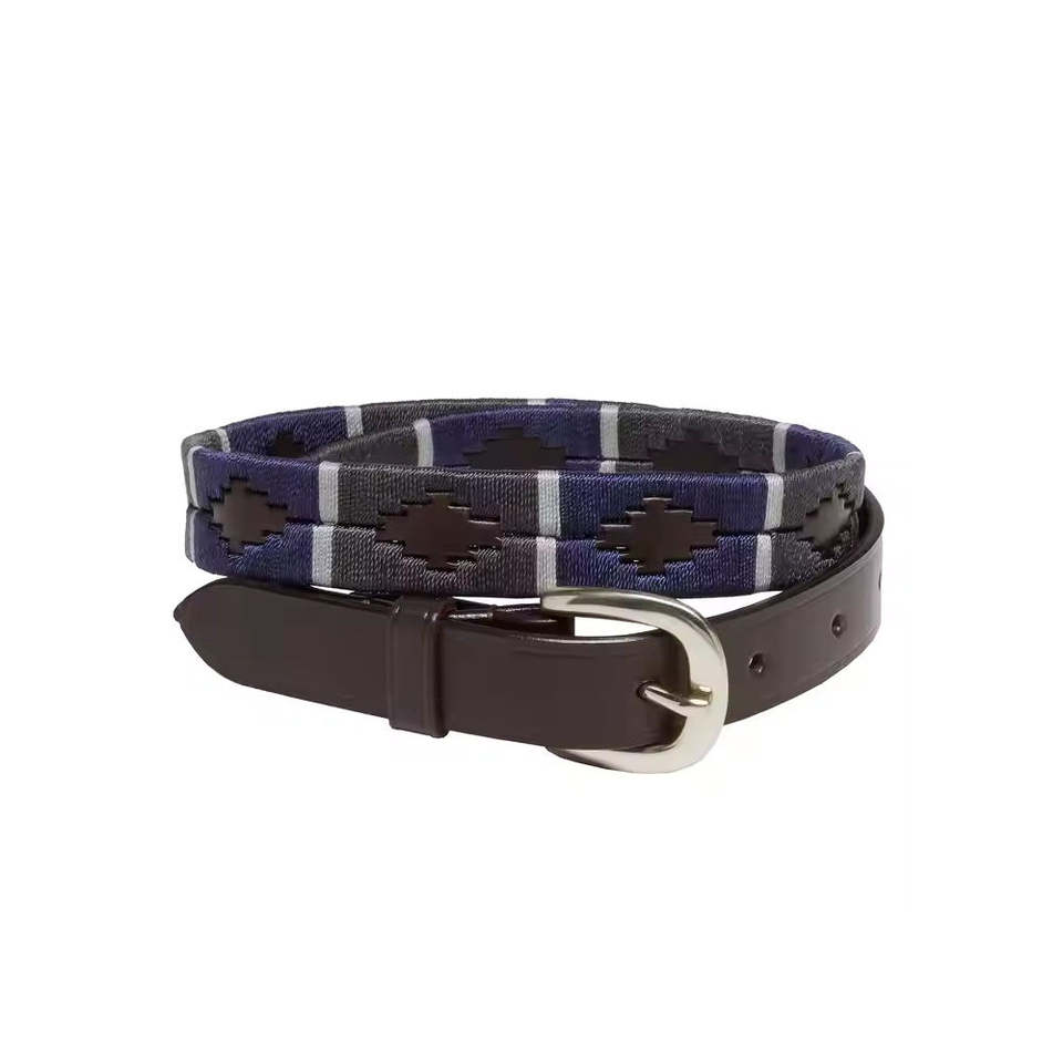 เข็มขัดหนังปักลายด้านบนปรับแต่งได้หัวเข็มขัดแบบเข็มสำหรับผู้ชายอุปกรณ์สำหรับการขี่ม้าและโปโล
