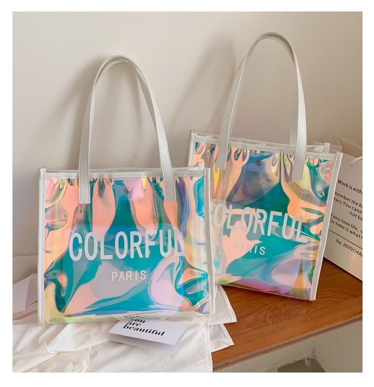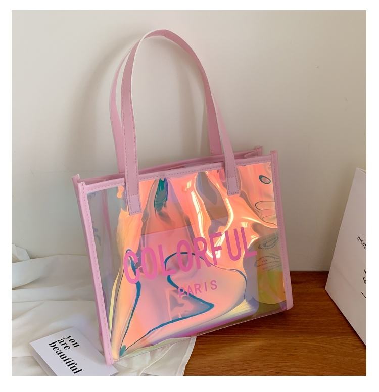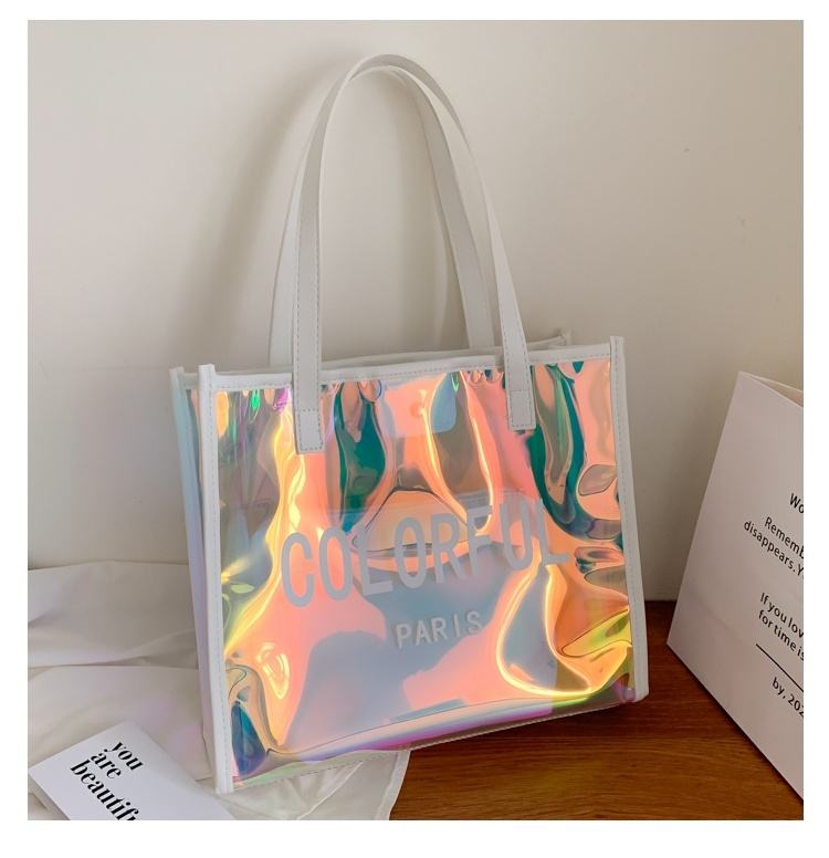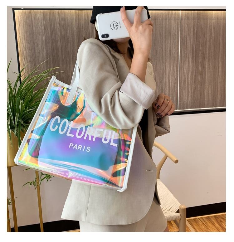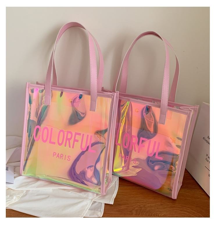 กระเป๋าผ้าพีวีซีสีสันสดใสปรับแต่งได้พร้อมเลเซอร์เจลลี่เดินทางออกไปช้อปปิ้ง
