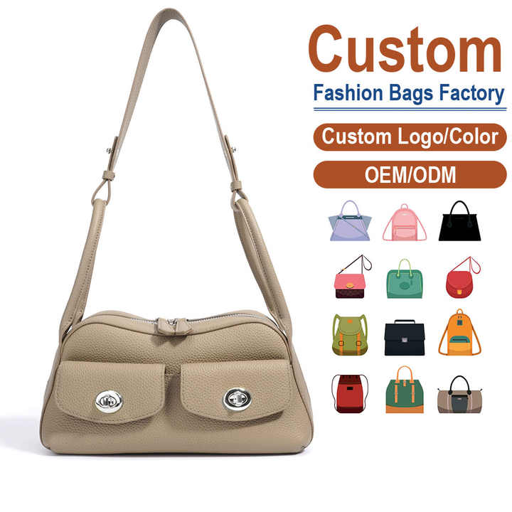 กระเป๋าสะพายไหล่หนังแท้ลายลิ้นจี่สไตล์วินเทจปรับแต่งได้สำหรับผู้หญิง เหมาะสำหรับฤดูร้อน มีช่องใส่ของแบบกระดุมเดี่ยว สายสะพายปรับได้ ใช้ได้ในออฟฟิศ