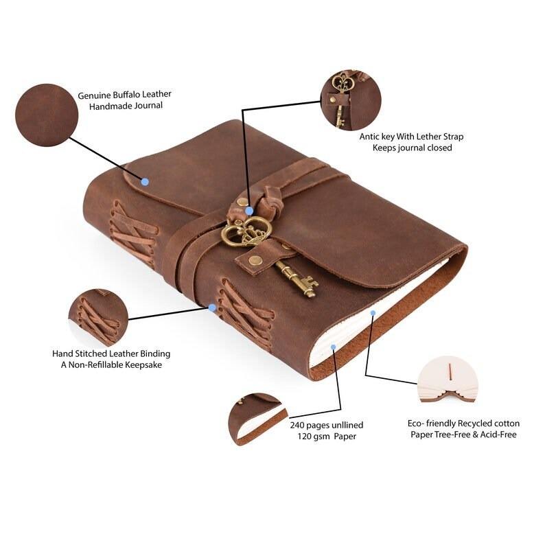 ประเภท:วารสารหนังวินเทจทำด้วยมือพร้อมตัวล็อคกุญแจ