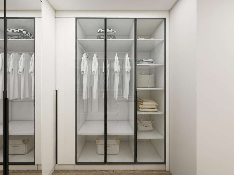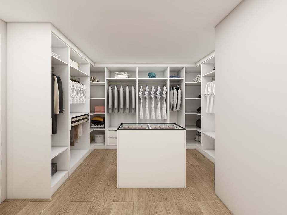 ตู้เสื้อผ้าแบบวอล์กอินปรับแต่งได้ พร้อมไอส์แลนด์กลางห้อง พื้นที่เก็บของกว้างขวาง น้ำหนักเบา เฟอร์นิเจอร์ห้องนอน ทำจากเมลามีน ประตูไม้และกระจก