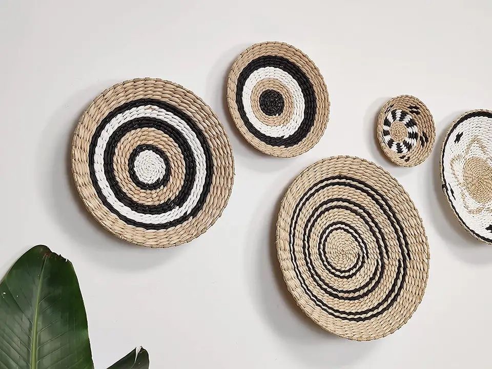 แผ่นรองจานแขวนผนังแบบทำมือสไตล์โบฮีเมียนตะกร้าตกแต่งถาด SSD-012ผักตบชวาปรับแต่งได้สีสันสดใส