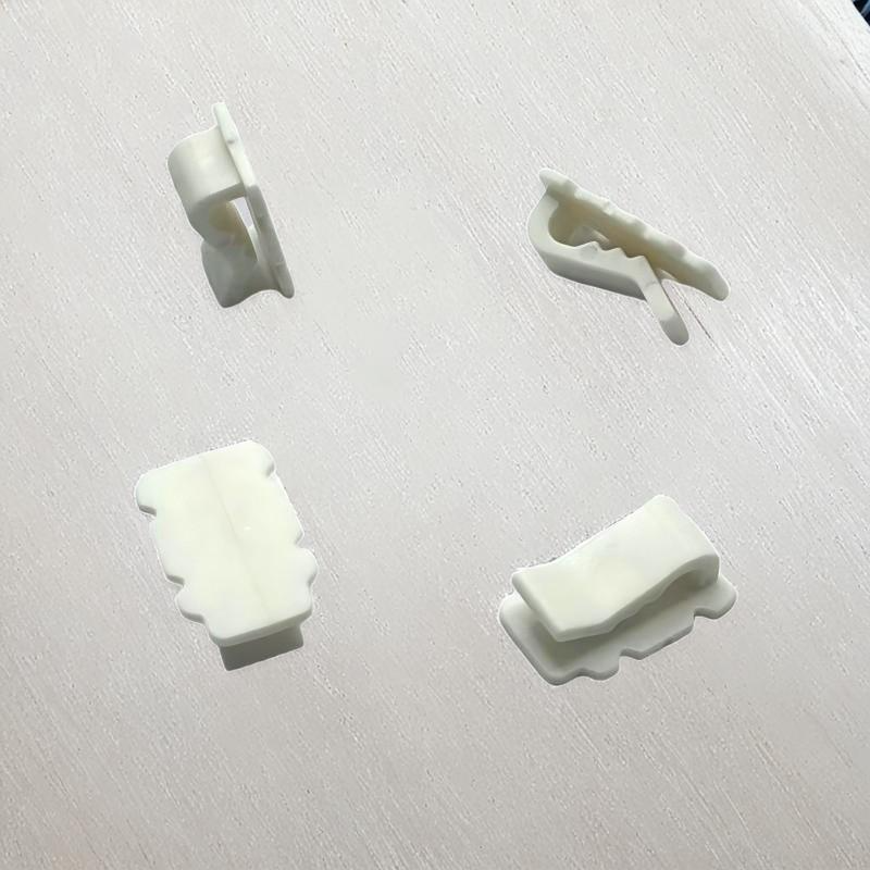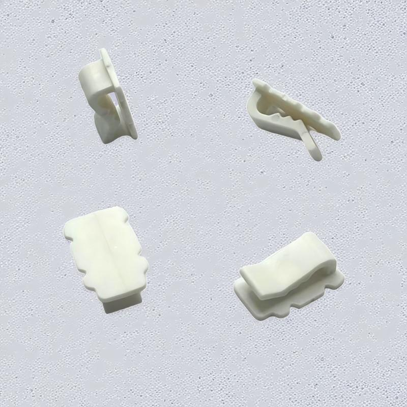 คลิปพลาสติกสีขาวที่สามารถปรับแต่งได้พร้อมโครงสร้างหนีบสำหรับยึดผ้าสายไฟและปากกระเป๋าในเสื้อผ้าและกระเป๋า