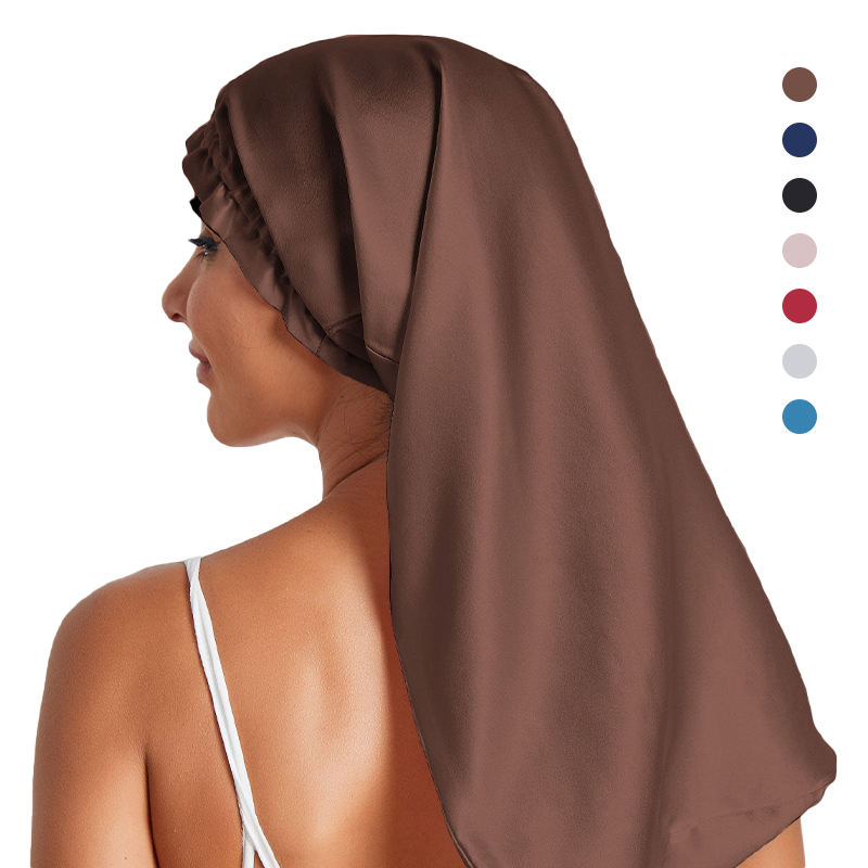 ปรับแต่งขายส่ง 6A เกรด 100% ผ้าไหมหม่อนบริสุทธิ์นุ่มสบายผม Bonnet ผ้าโพกหัวนอนผ้าไหมหมวกริบบิ้นยาว