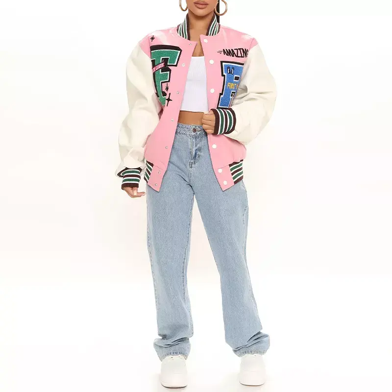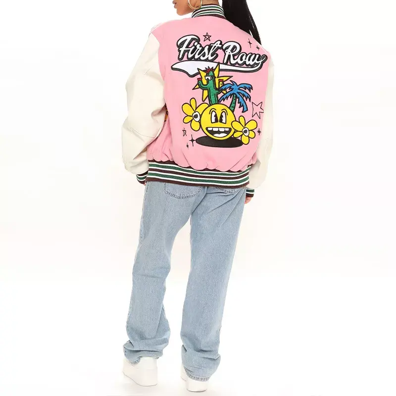 เสื้อแจ็คเก็ตวาร์ซิตี้ผ้าฟลีซแบบควิลท์สำหรับผู้หญิง ปรับแต่งได้ตามต้องการ ขายส่ง คุณภาพสูง บริการออกแบบผลิตระดับพรีเมียมด้วยเทคนิคการพิมพ์แบบซับลิเมชั่น