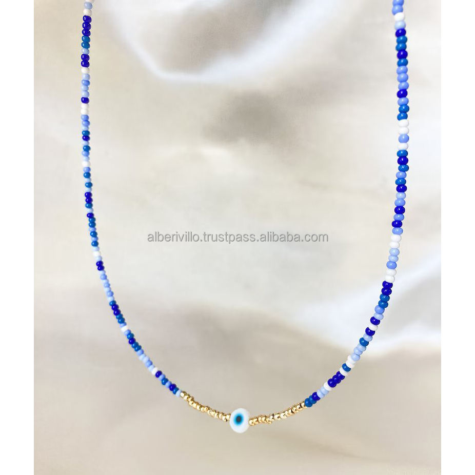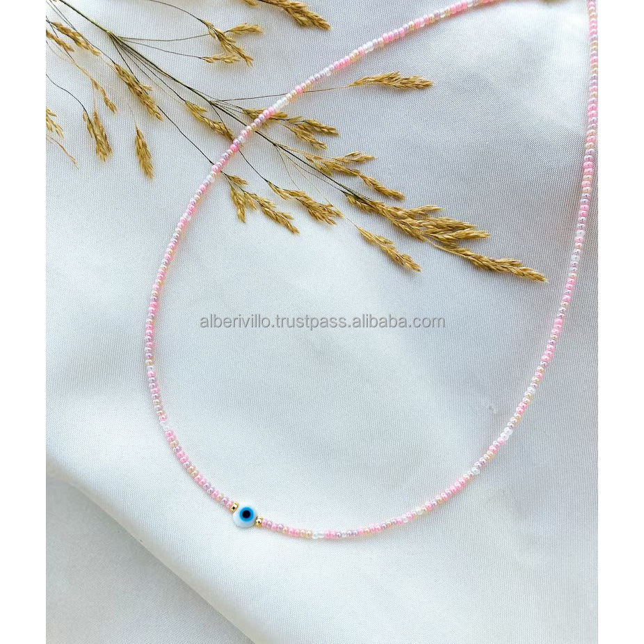 สร้อยคอโบฮีเมียนปรับแต่งได้สำหรับผู้หญิงและเด็กผู้หญิงลูกปัดลูกปัดแก้วแบบเรียบง่ายสร้อยไข่มุกปรับแต่งได้