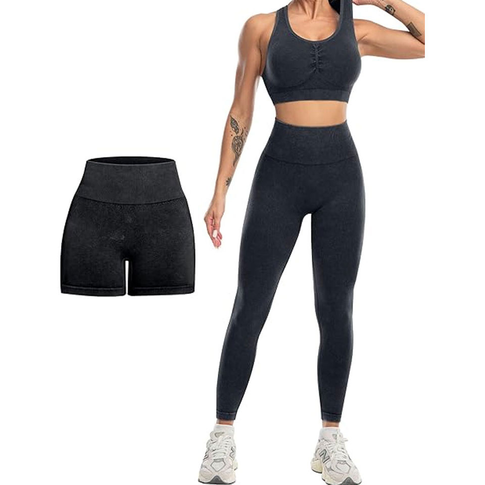ชุดออกกำลังกายผู้หญิง 3 ชิ้น ปรับแต่งได้ ไซส์ XL ชุดโยคะไร้รอยต่อ บราออกกำลังกายไร้โครง ไซส์พลัส ปักลายเรียบง่าย ราคาถูก รับผลิตแบบ OEM