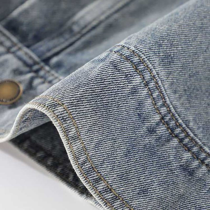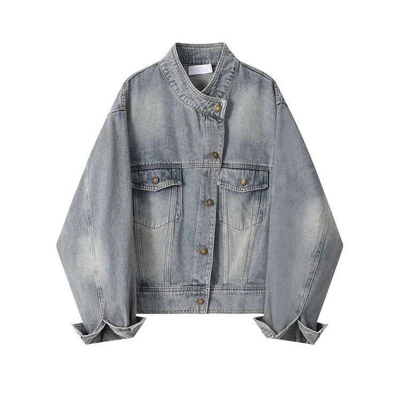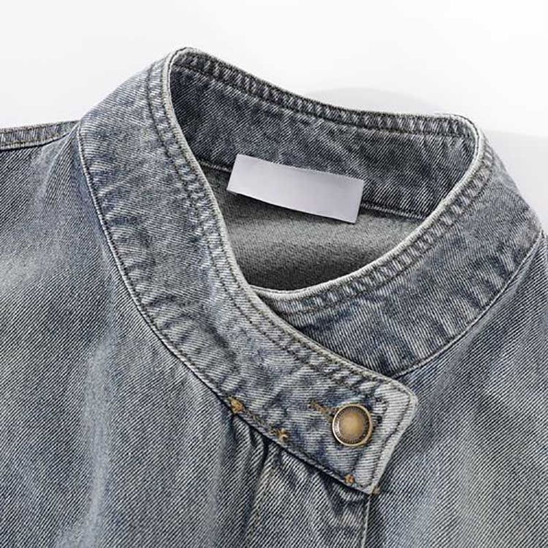แจ็กเก็ตยีนส์แบบมีกระดุมสำหรับผู้หญิงแจ็กเก็ตเดนิมใส่สบายปรับแต่งได้จากโรงงาน