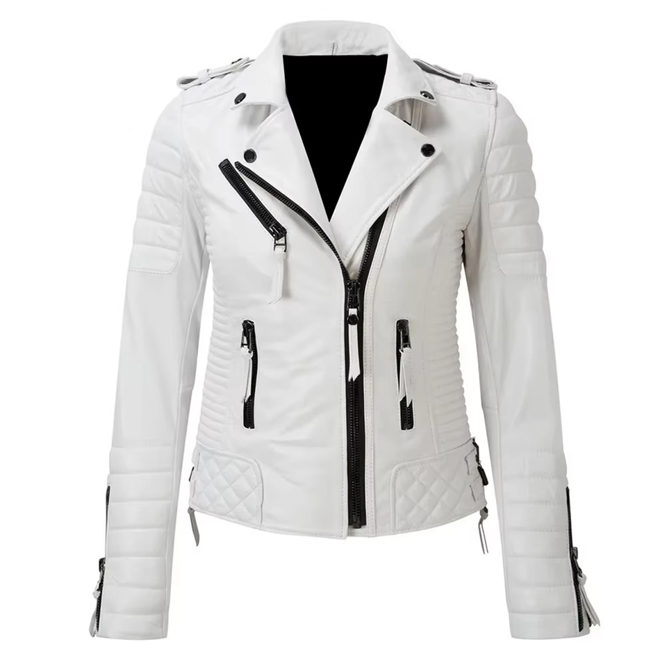 แจ็คเก็ตหนังแท้สำหรับผู้หญิงแบบปรับแต่งได้ ไซส์ใหญ่ สำหรับฤดูหนาว มีซิป กลับด้านได้ ระบายอากาศได้ดี แบบเย็บลายตาราง