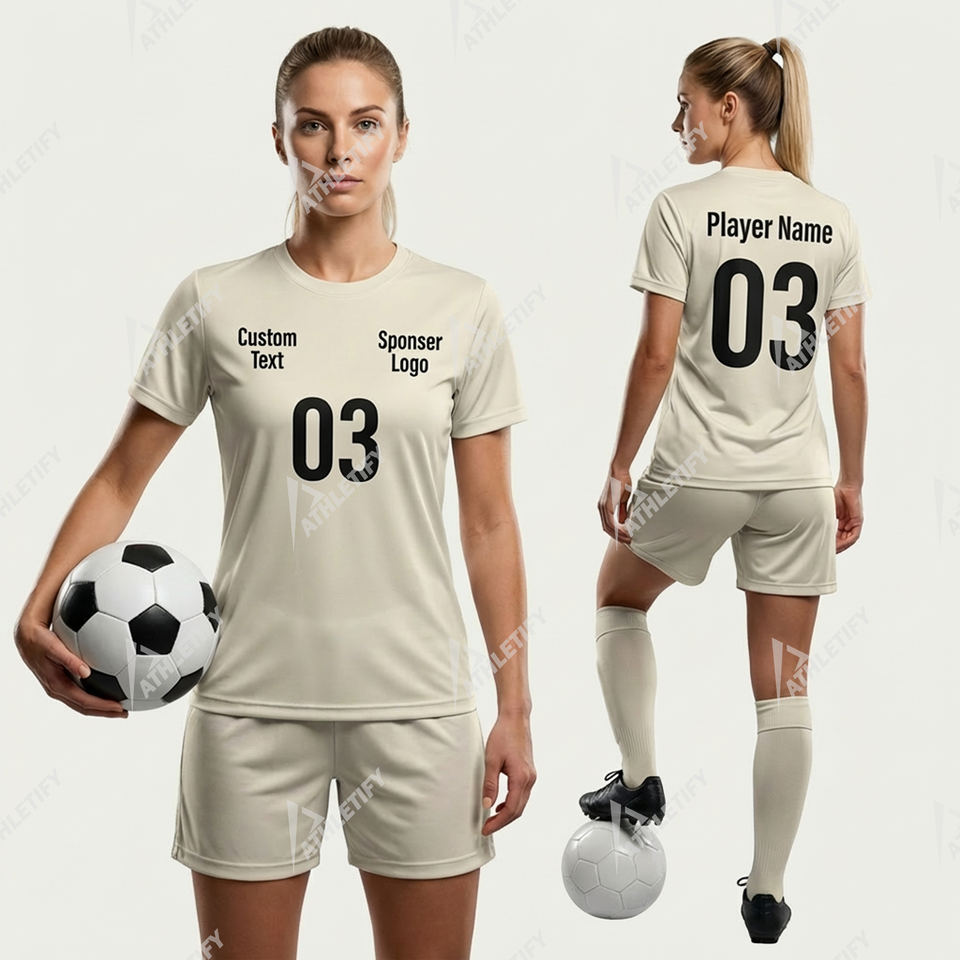 ชุดยูนิฟอร์มฟุตบอลหญิงแบบปรับแต่งได้ เสื้อและกางเกงขาสั้น โพลีเอสเตอร์ 100% พิมพ์ลายดิจิทัล แห้งเร็ว ระบายอากาศได้ดี ซึมซับเหงื่อ รับผลิตแบบ OEM