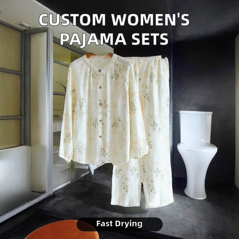 เซ็ตชุดนอนสตรีแบบปรับแต่งได้ชุดนอนสตรีผ้าฝ้ายคอตตอนชุดใส่อยู่บ้านเอวยางยืดดีไซน์สวยงามสำหรับฤดูร้อน