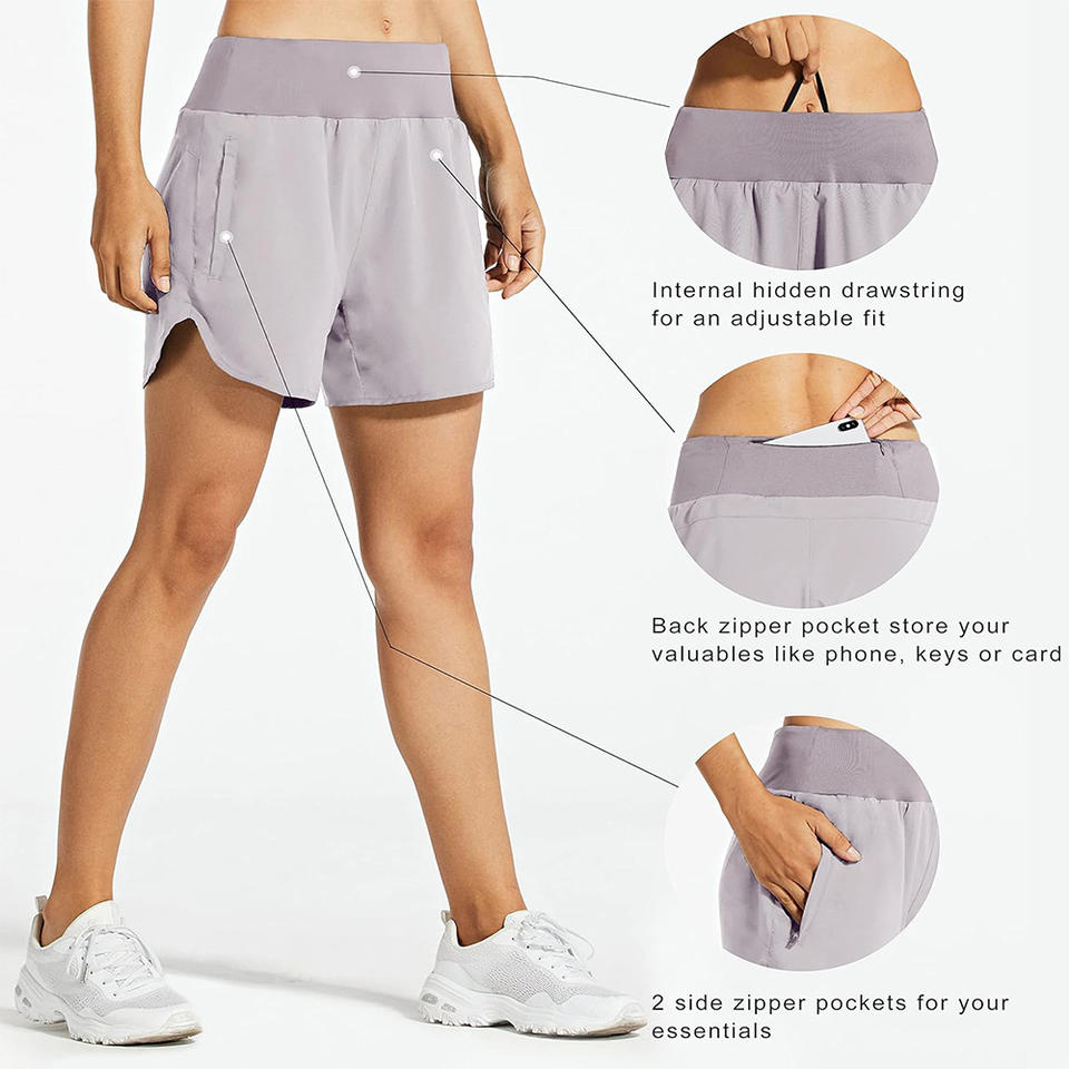 กางเกงขาสั้นบอร์ดเอวสูงสำหรับผู้หญิงกางเกงขาสั้นผ้าออกซ์ฟอร์ดระบายอากาศได้แห้งเร็วเป็นมิตรกับสิ่งแวดล้อมชุดวิ่ง
