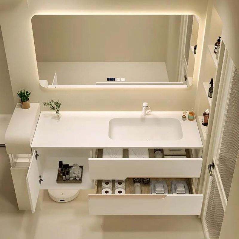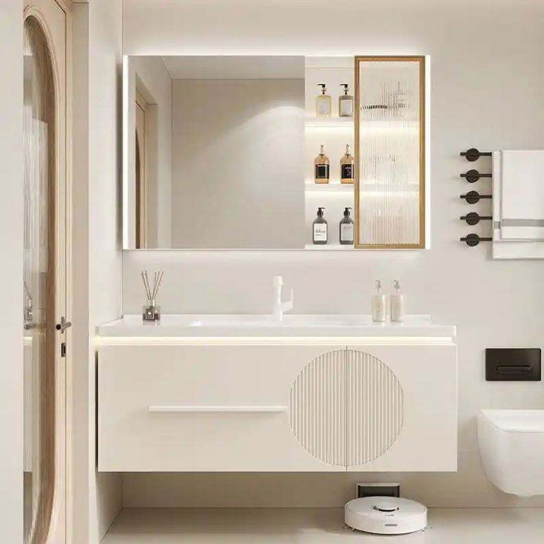 ตู้ห้องน้ำไม้ปรับแต่งได้พร้อมกระจก LED และอ่างเซรามิก ยอดขายรวมสำหรับโต๊ะเครื่องแป้งและตู้อ่างล้างหน้า
