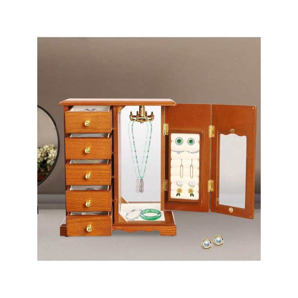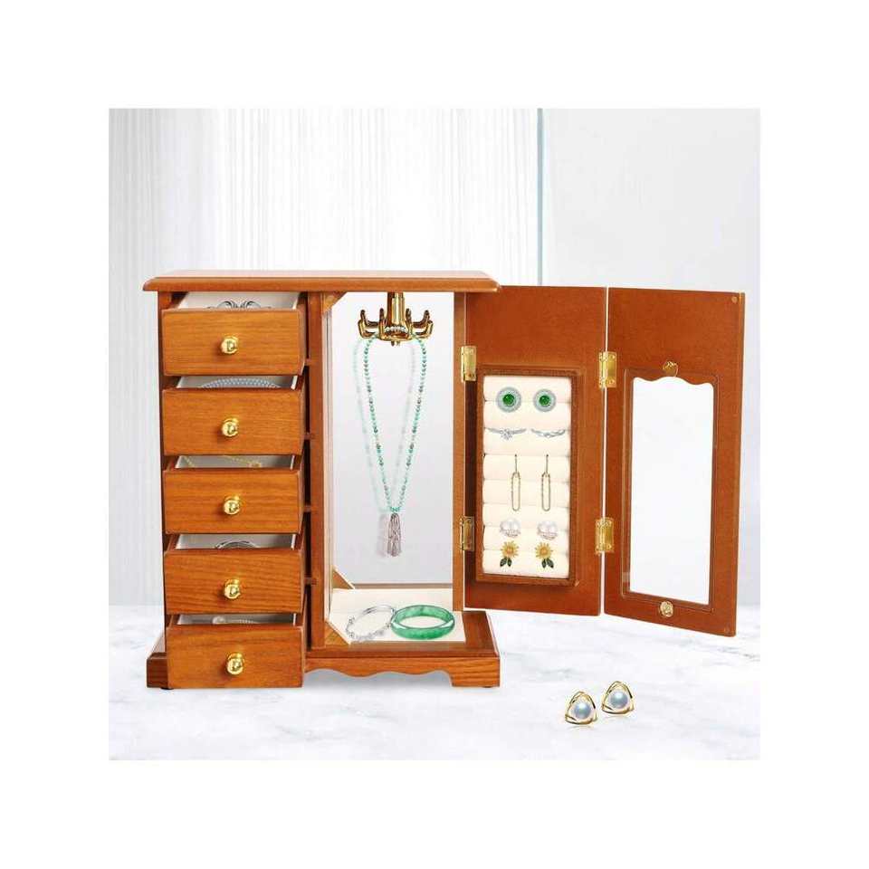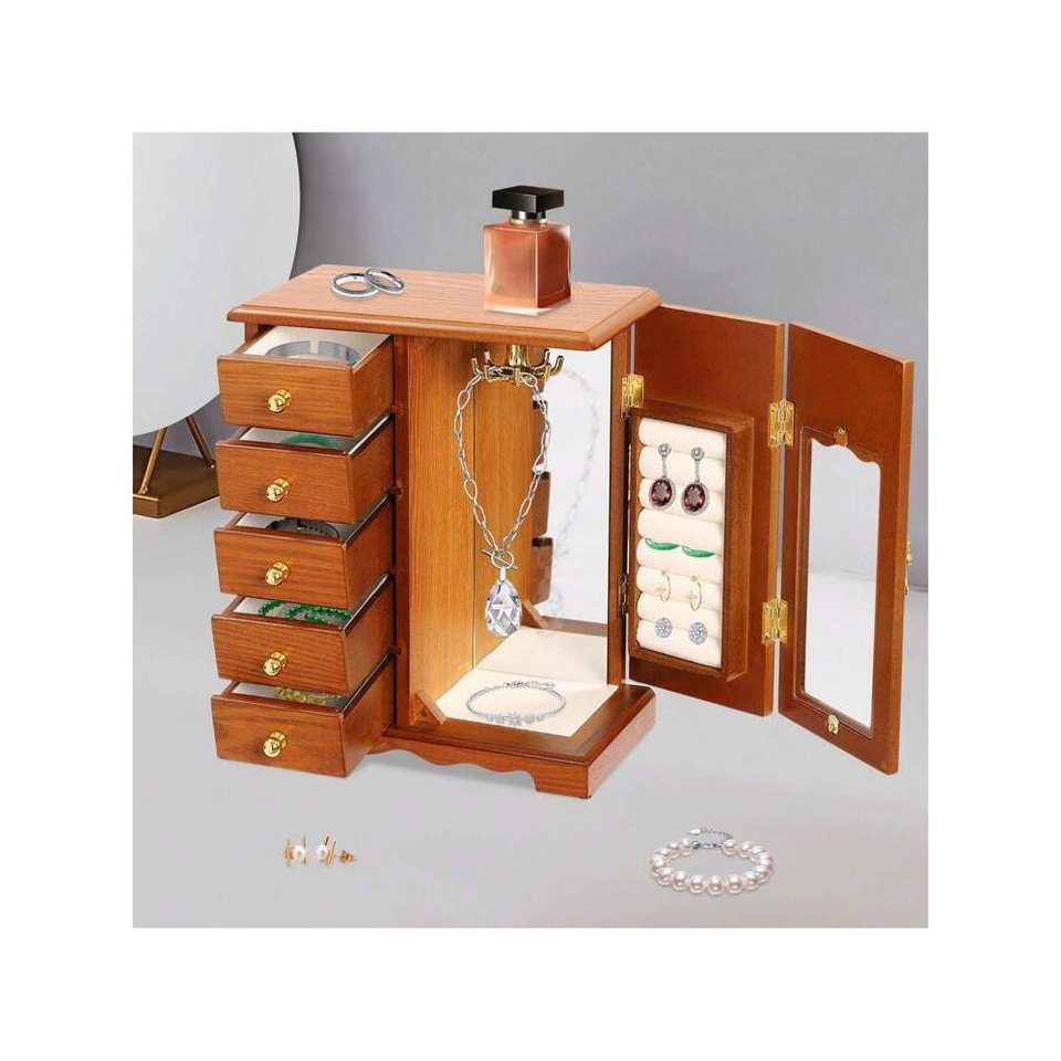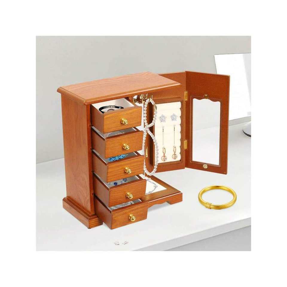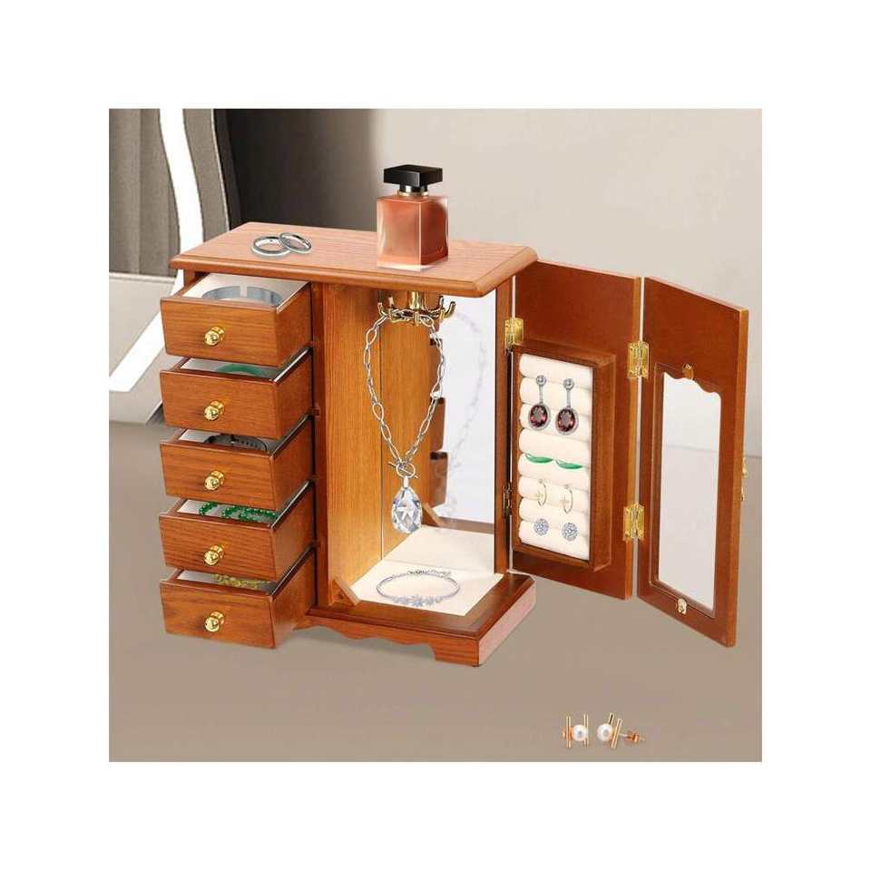 Customizable Wooden Jewelry Box 5-Drawer Desktop Organizer with Necklace Hooks for Ring Storage for Jewelry Storage