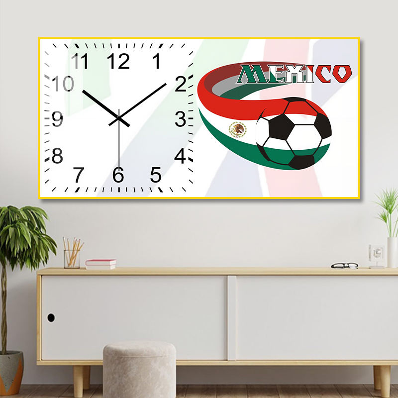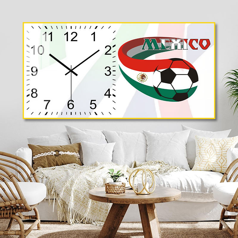 นาฬิกาแขวนผนังรูปฟุตบอลธงชาติเม็กซิโกแบบปรับแต่งได้สำหรับแฟนบอล ตกแต่งบ้านส่วนตัว ห้องนั่งเล่น