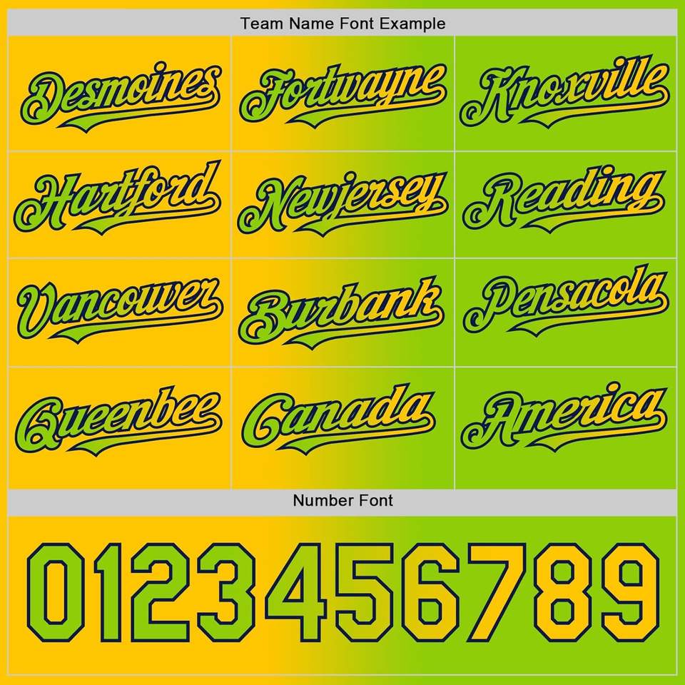 เสื้อเบสบอลโพลีเอสเตอร์สีเหลืองเขียวแบบปรับแต่งได้ ชุดกีฬาแบบกระดุมส่วนตัว สไตล์ฮิปฮอป ดีไซน์ลายเฟด