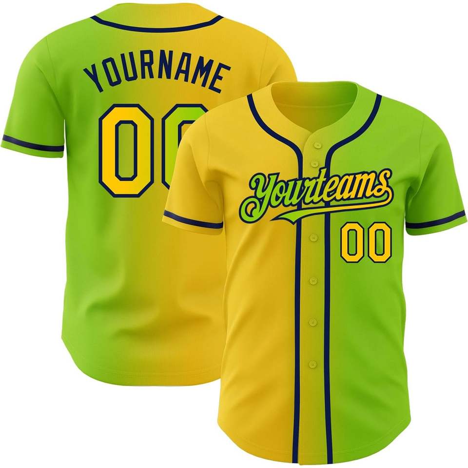 เสื้อเบสบอลผ้าโพลีเอสเตอร์สีเขียวเหลืองชุดเสื้อกีฬามีกระดุมแบบปรับแต่งได้ชุดออกกำลังกายในสไตล์ฮิปฮอปสีจาง