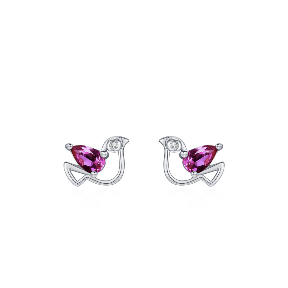 ต่างหูเงินแท้ S925 รูปนกพิราบประดับเพทายสีม่วงทรงหยดน้ำ รุ่น Animal Series แบบปรับแต่งได้ วัสดุทองแดง สำหรับผู้หญิง