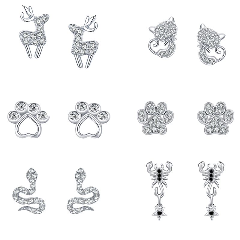 ต่างหูเงินแท้ S925 ประดับเพชรซิคอนทรงกลม รูปสัตว์ ดีไซน์ทองแดงปรับแต่งได้ ของขวัญวาเลนไทน์สำหรับผู้หญิง