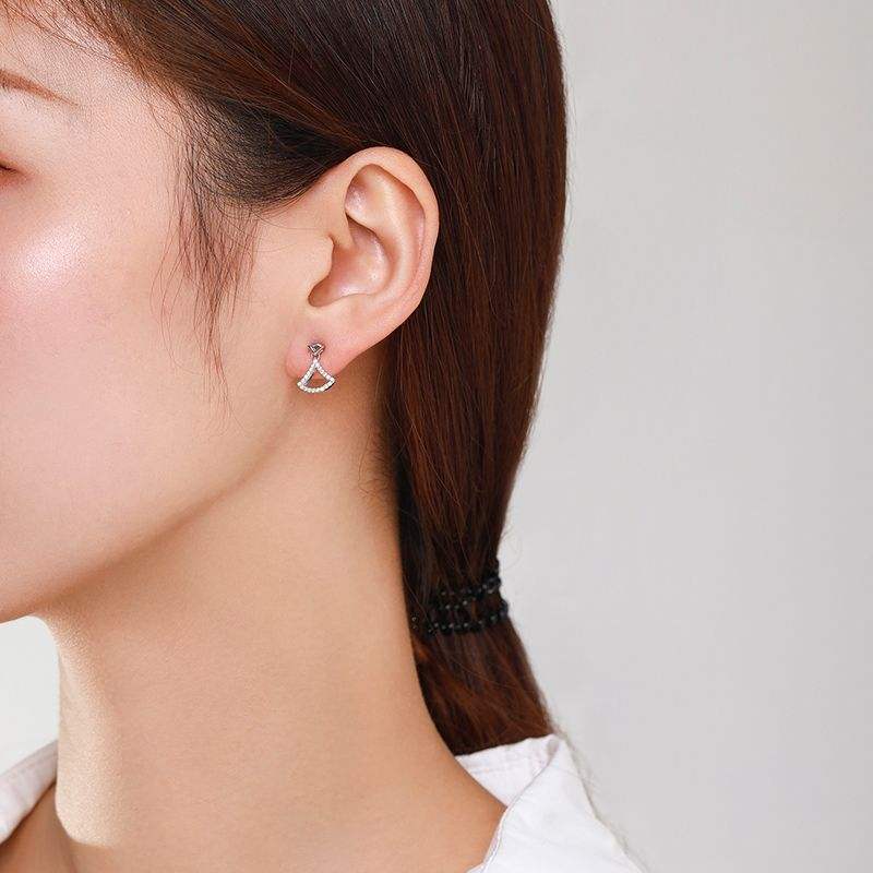 ต่างหูทรงกระโปรงรูปพัดประดับเซอร์โคเนียทรงกลมเงินแท้ S925 รุ่นทองแดงปรับแต่งได้ - สินค้าสำหรับผู้หญิงโดยเฉพาะ