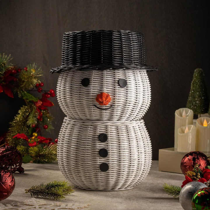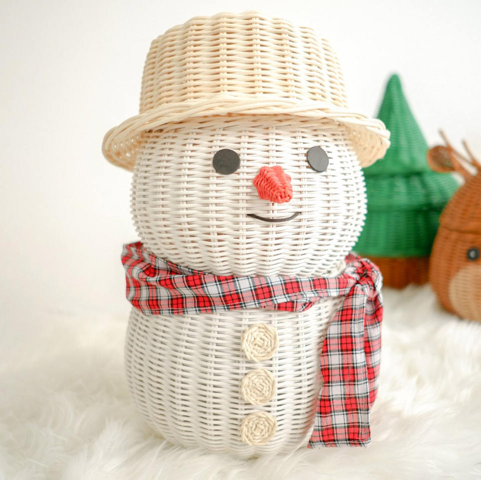 ตุ๊กตาหิมะหวายขนาดใหญ่สำหรับตกแต่งคริสต์มาสกลางแจ้ง คุณภาพดีที่สุด งานฝีมือธรรมชาติ ตุ๊กตาหิมะคริสต์มาส