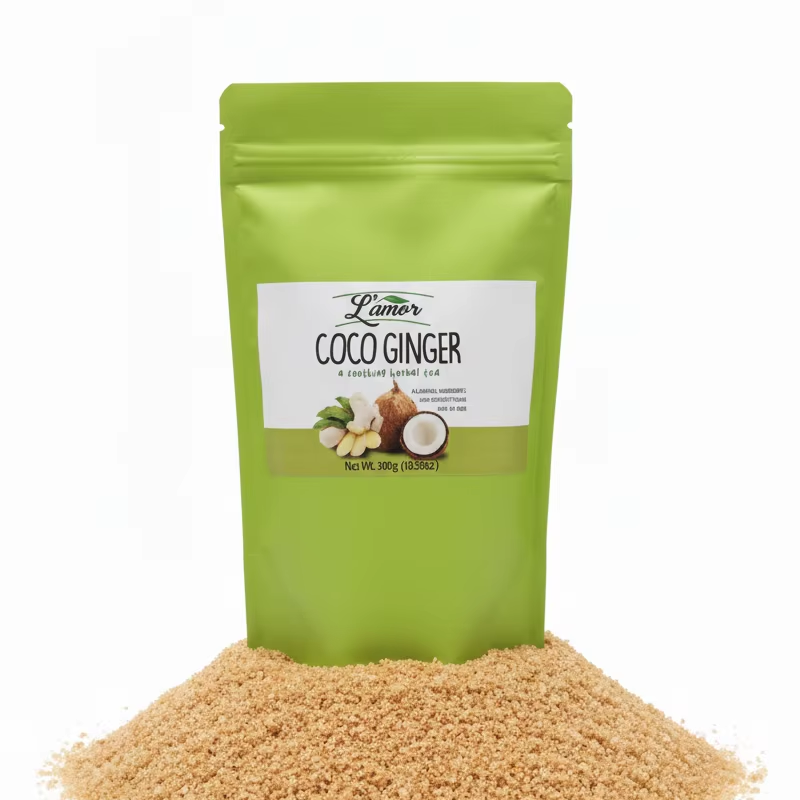 ชาผงมะพร้าวขิงออร์แกนิคแบบปรับแต่งได้ในขวด 300 กรัม