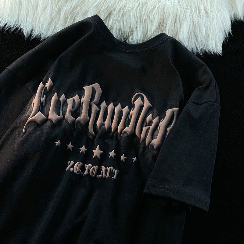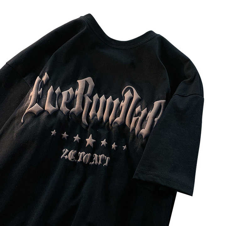 เสื้อยืดแขนสั้นสำหรับผู้ชาย, เสื้อยืดพิมพ์ลายพัฟ3D ทรงหลวมทำจากโฟม3D สำหรับผู้ชาย