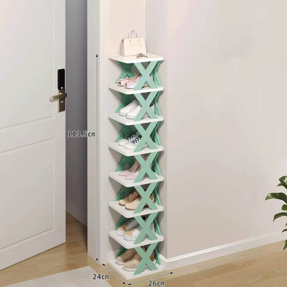 ชั้นเก็บรองเท้า2/3/4/5/6/7ชั้น X ชั้นวางรองเท้าด้านหน้าประตูทางเข้าชั้นเก็บรองเท้าแนวตั้งแบบแคบ