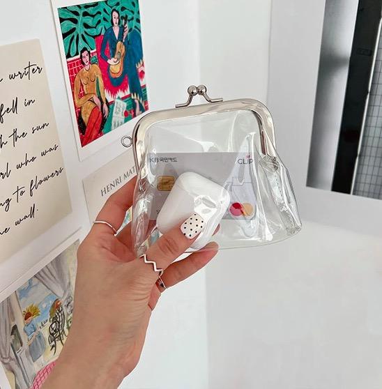 กระเป๋าใสใส่เหรียญแบบใส PVC ปรับแต่งได้ พร้อมตัวล็อคแบบ Kiss-Lock กันน้ำ กระเป๋าเงินใบเล็กสำหรับผู้หญิง