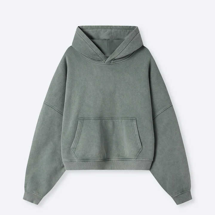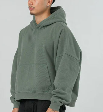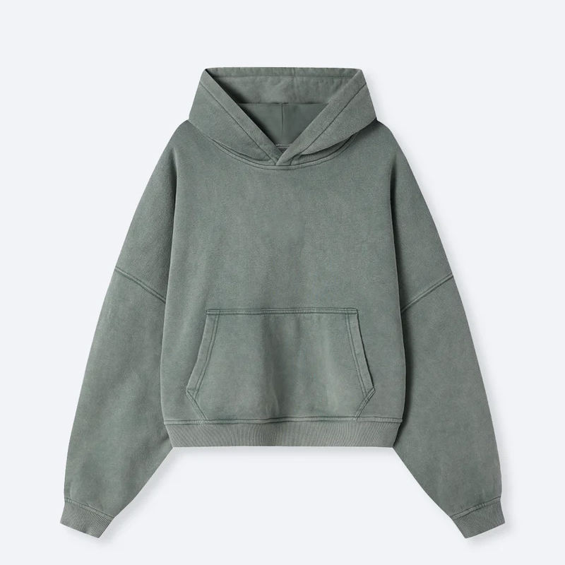 เสื้อฮู้ด Boxy สไตล์วินเทจผ้าฝ้ายพิมพ์ภาพเปล่าสีมะกอก