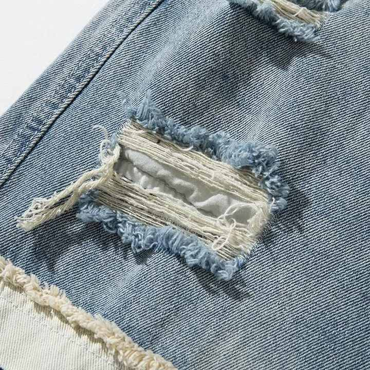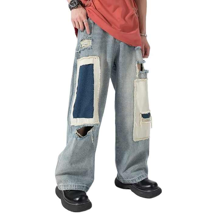 Customization Fashion Oversized Polyester Loose Straight Casual Pants Ripped Washed Denim Jeans Men