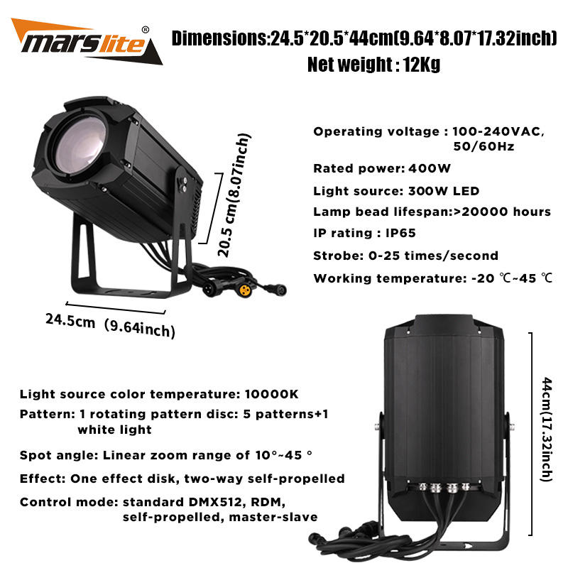 โกโบโปรเจ็คเตอร์ปรับแต่งได้, โปรเจ็คเตอร์ Gobo ซูม300วัตต์กันน้ำโลโก้ IP65ไฟสถาปัตยกรรม