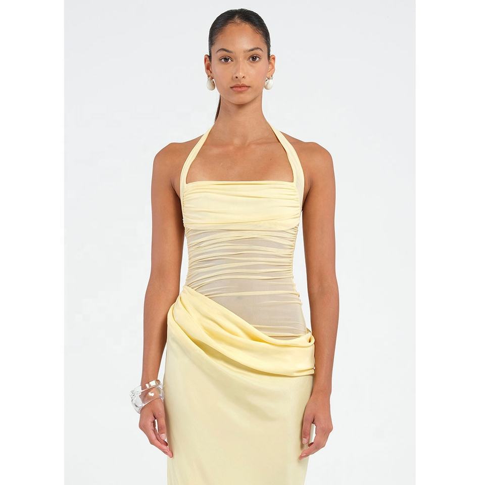 ชุดเดรสยาวทรงแม็กซี่ แต่งลูกไม้ ด้านซ้าย ปรับแต่งได้ เอวธรรมชาติ จับจีบ ระบายอากาศ ซักได้ ไซส์พลัส ยาว สง่างาม สไตล์ลำลอง ตัดเย็บอย่างดี