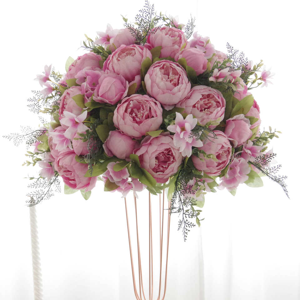 การจัดดอกไม้ประดิษฐ์สีแดงม่วงแบบหรูหราสั่งทำพิเศษ สำหรับตกแต่งโต๊ะกลางงานแต่งงานและของตกแต่งโต๊ะขนาดใหญ่