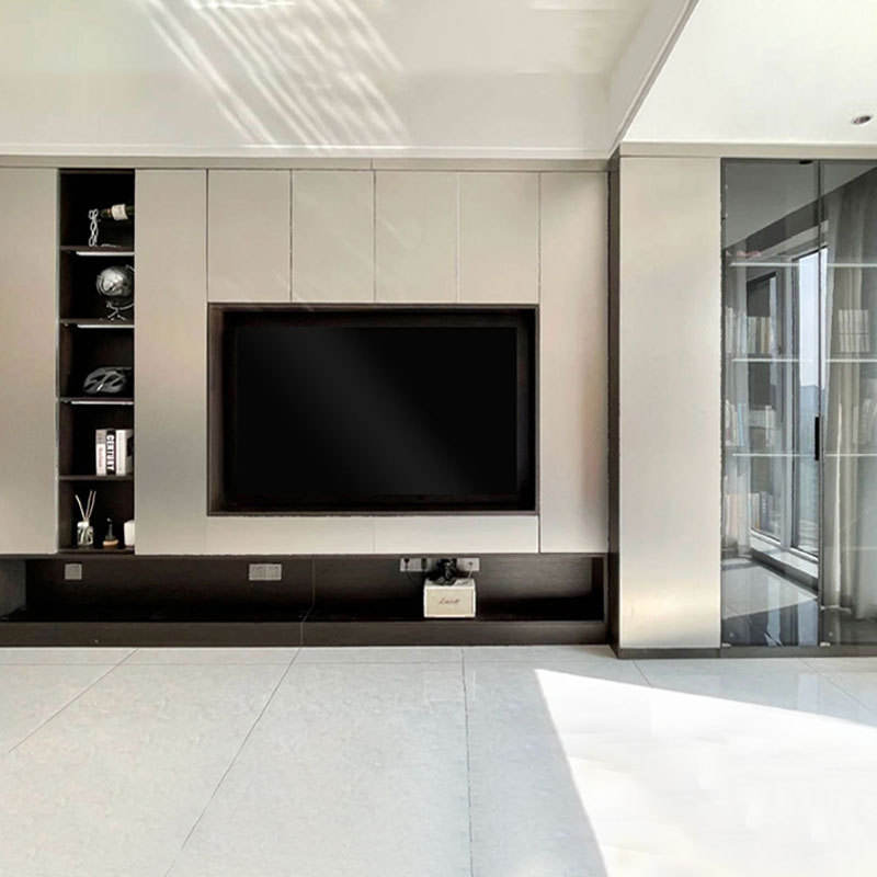 การปรับแต่งที่ทันสมัยทีวีไม้ยืนตู้ที่มีการจัดเก็บสำหรับโรงแรมอพาร์ทเม้นเฟอร์นิเจอร์ห้องนั่งเล่นการออกแบบที่ทนทาน