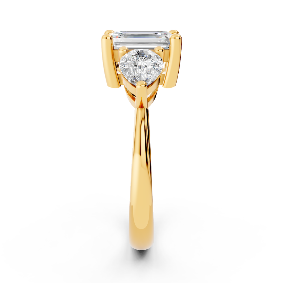 แหวนเพชรรูปลูกแพร์3เม็ดสีทองรูปมรกต10K 14K 18K หรูหราผลิตจากโรงงานผลิตตามสั่ง