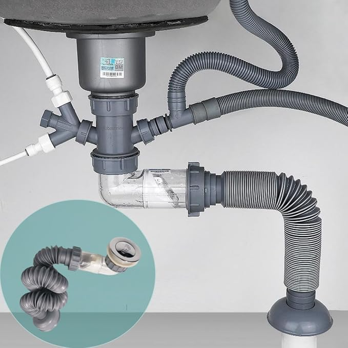 ท่อระบายน้ำแบบปรับแต่งได้ PP ท่อระบายน้ำแบบยืดหดได้ ท่อระบายน้ำในครัว ท่อระบายน้ำกันรั่ว อุปกรณ์ห้องน้ำ อ่างล้างจาน