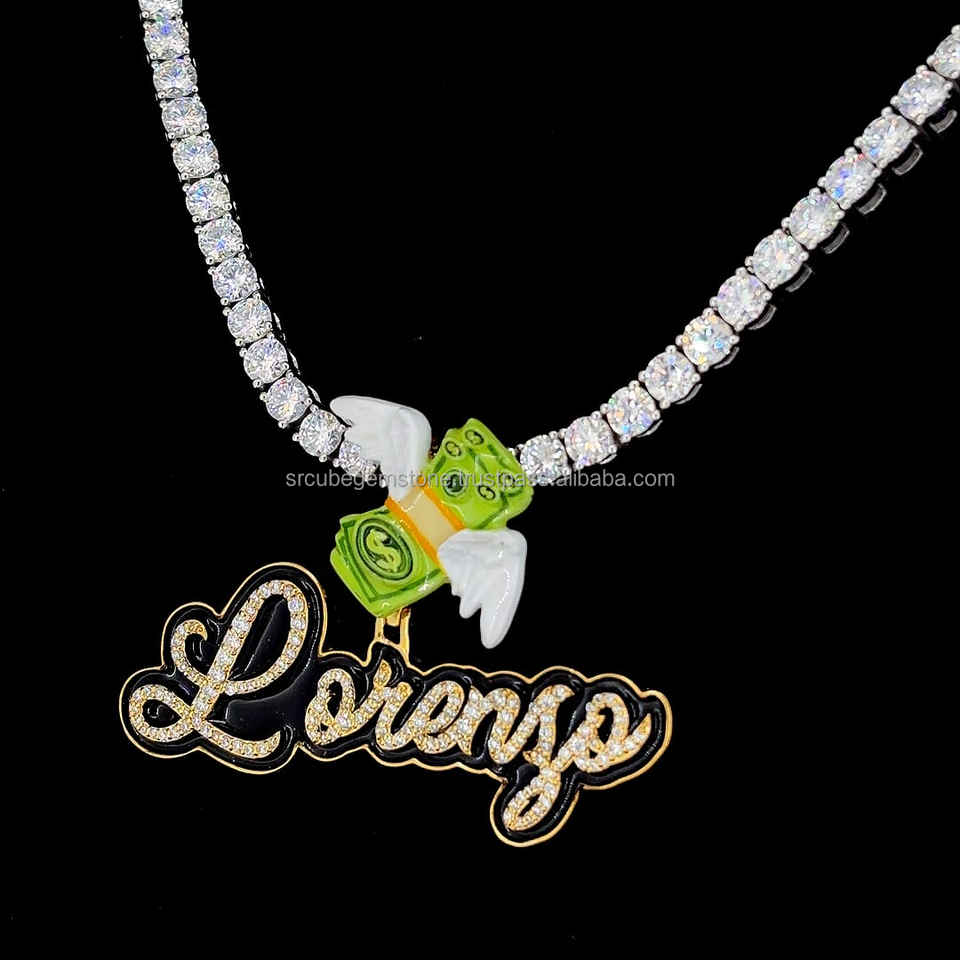 จี้เพชรโมอิสเคลือบสีดำประดับ925สำหรับทุกเพศสามารถกำหนดชื่อได้เองตามต้องการ