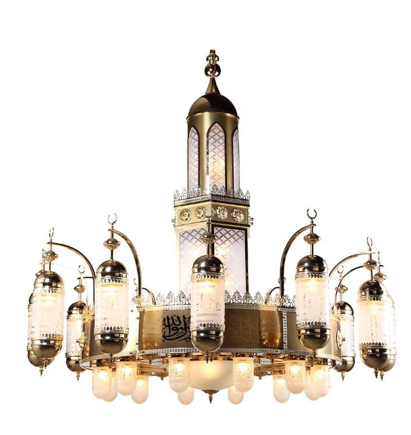 โคมไฟระย้าอิสลามปรับแต่ง,โคมไฟระย้าคริสตัลไฟมัสยิดทองคำหรูหราขนาดใหญ่สำหรับโบสถ์