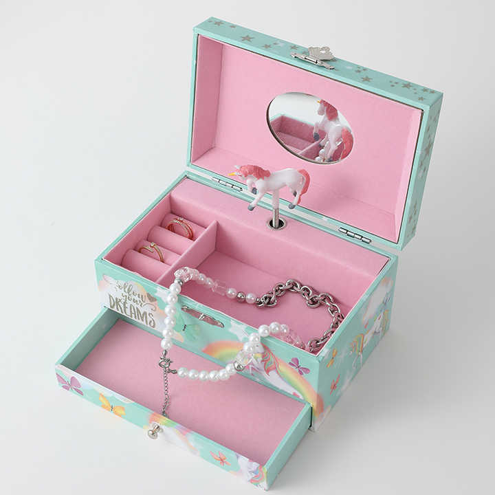กล่องดนตรีไม้รูปทรงสี่เหลี่ยมผืนผ้าแบบกำหนดเองได้ น่ารัก สำหรับวันเกิด กล่องดนตรีใส่เครื่องประดับเด็ก กล่องเก็บเครื่องประดับเด็ก