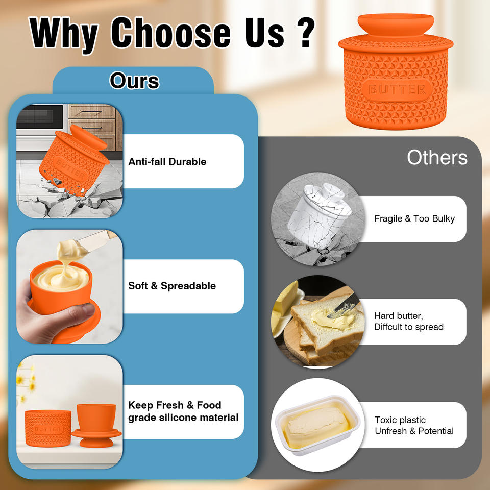 กล่องใส่เนยซิลิโคนแบบปรับแต่งได้ พร้อมมีด ฐานเซรามิก ภาชนะเก็บอาหารสุญญากาศ สไตล์ยุโรปแบบฟาร์มเฮาส์ ของขวัญเครื่องครัว