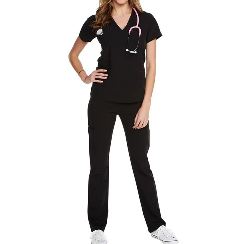 ชุดยูนิฟอร์มพยาบาลแบบสครับสีแดงสไตล์แฟชั่นสุดเท่ รุ่น Grays Anatomy ไซส์ 4XL สำหรับสาวสูง พร้อมกางเกงโยคะเอวสูง