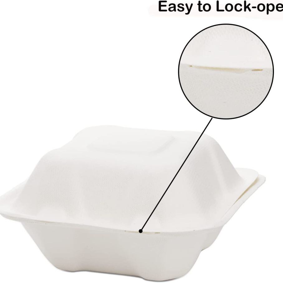 กล่องอาหารแบบมีร่องสำหรับใส่อาหารกลับบ้าน ทำจากเยื่อชานอ้อย ย่อยสลายได้ สามารถปรับแต่งได้ พร้อมลายนูน
