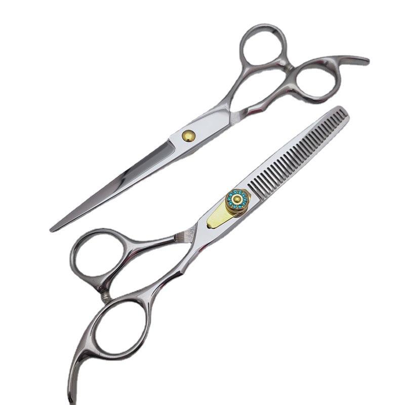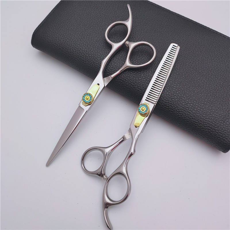 กรรไกรตัดผมมืออาชีพแบบปรับแต่งได้ ผลิตจากเหล็กกล้าไร้สนิม 6CR13 สำหรับคนถนัดขวา เหมาะสำหรับใช้ในร้านเสริมสวย