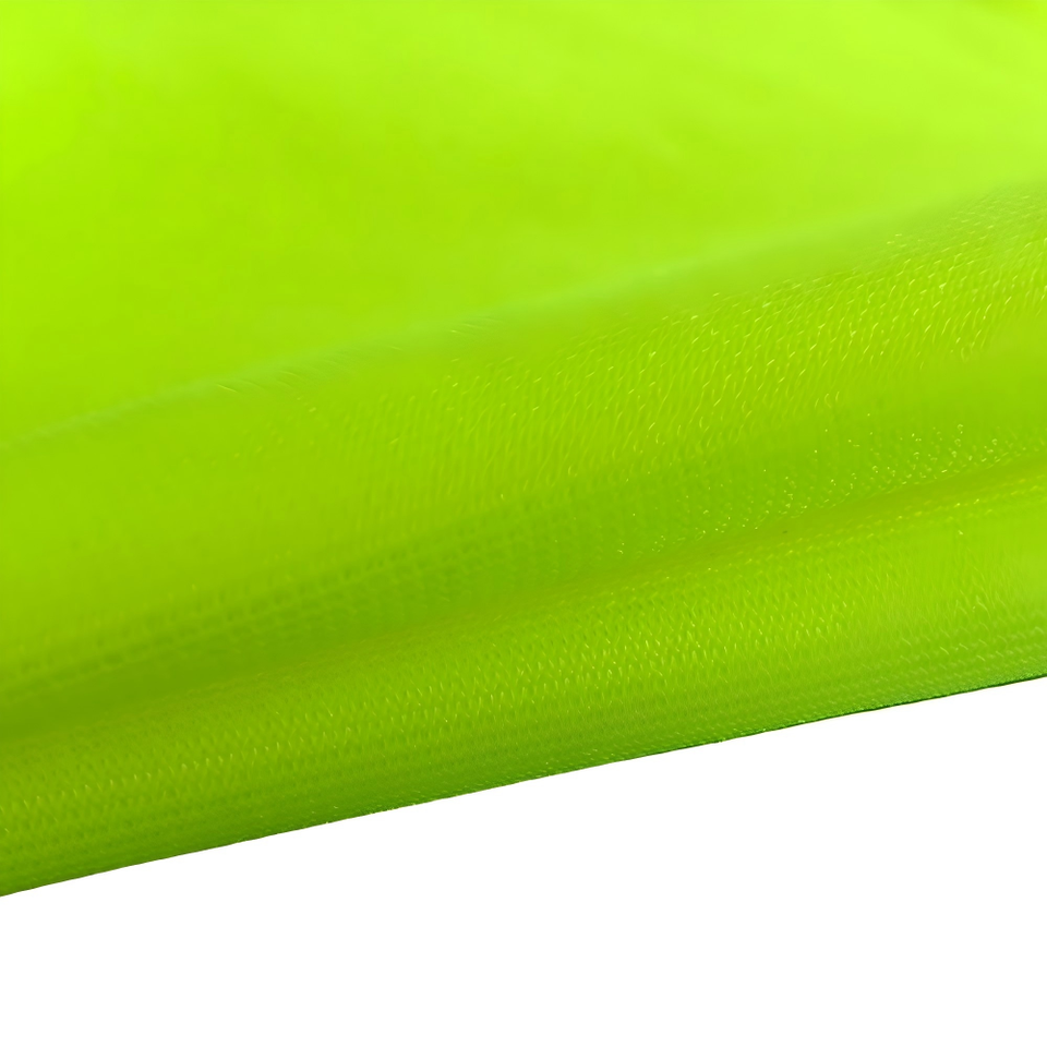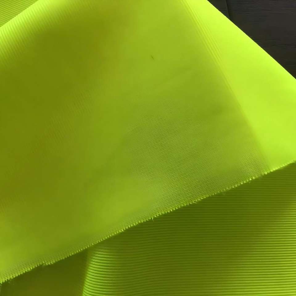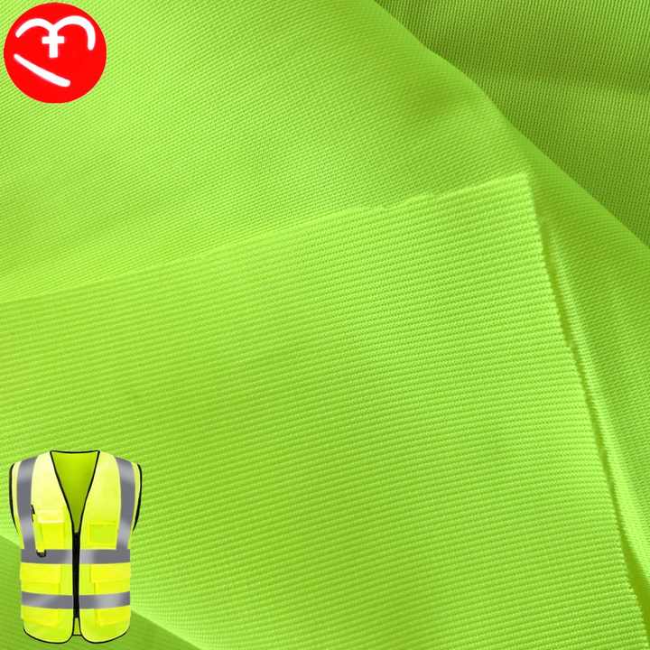 ผ้าถักโพลีเอสเตอร์100% ผ้า HIV สีเหลืองระบายอากาศได้ดีสำหรับเสื้อกั๊กใส่ทำงานเครื่องแบบเครื่องป้องกัน PPE