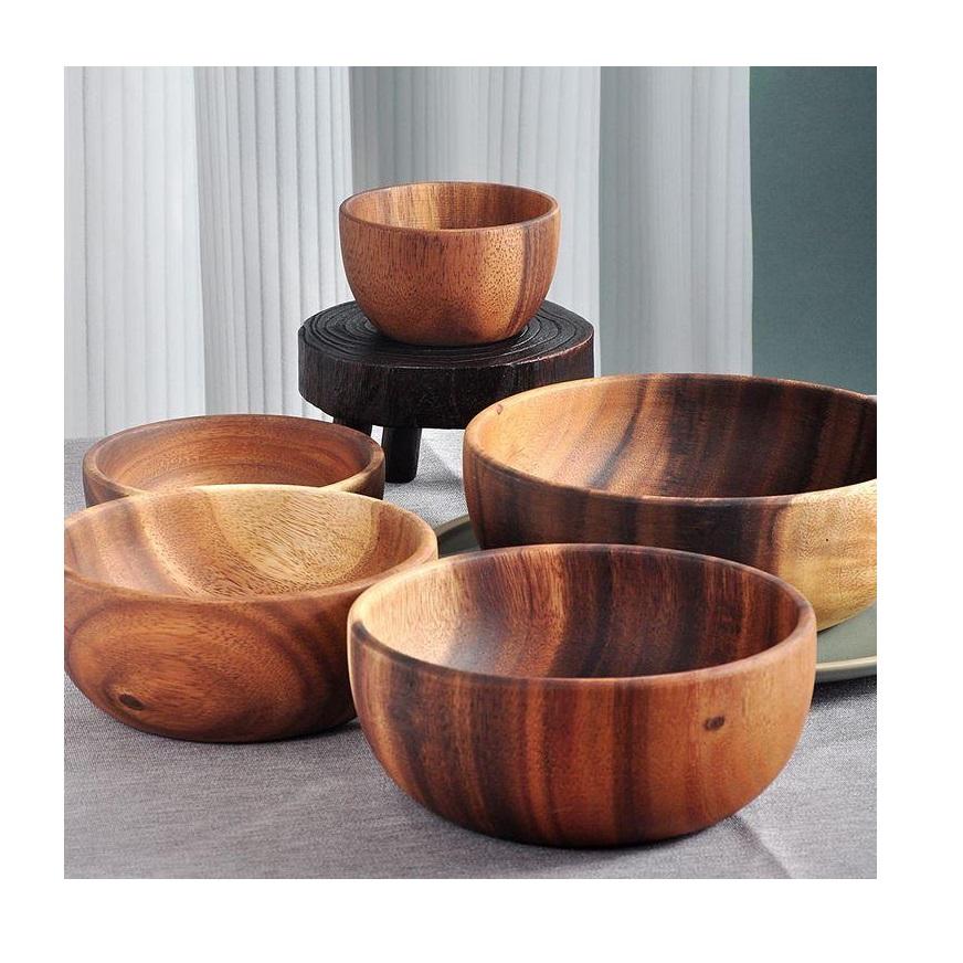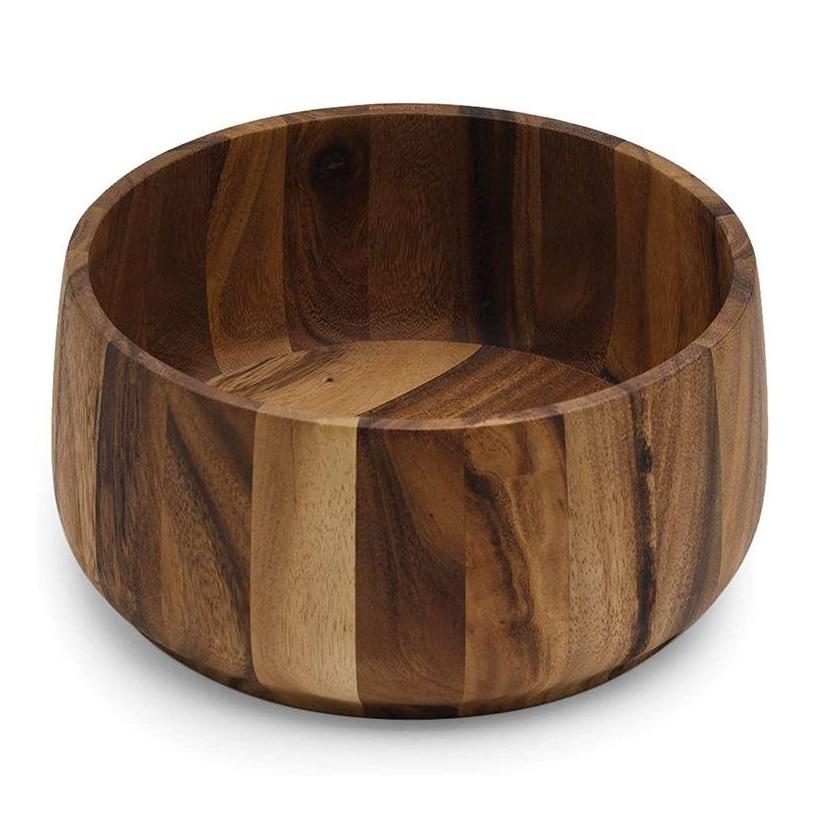 ชามสลัดไม้แท้ 100% อุปกรณ์ครัว ชามไม้สำหรับผสมและเสิร์ฟผัก ผลไม้ และบะหมี่