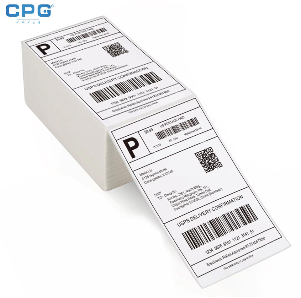 ปรับแต่งฉลากบรรจุภัณฑ์เคลือบผิวด้านบน ขนาด 100x150 มม. สติกเกอร์ฉลากความร้อนโดยตรง สีขาว สำหรับงานโลจิสติกส์ ฉลากพับแบบพัดขนาด 4x6 นิ้ว สำหรับการจัดส่ง